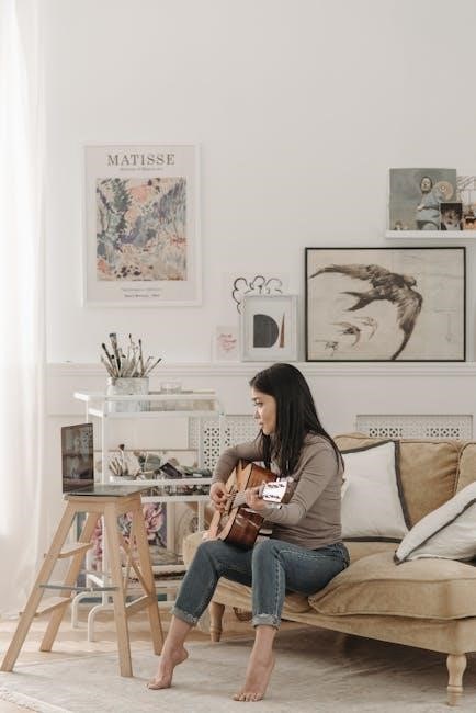 Guitar PDFs typically present chord charts and tablature, suitable for both beginner and advanced players. Variations include simplified chords for easy strumming and fingerstyle arrangements for more complex playing.